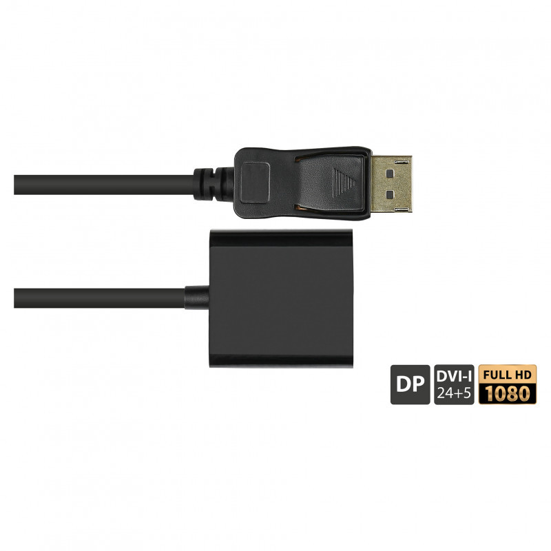 "Alcasa DP-AD10. Cable length: 0.2 m, Connector 1: DisplayPort, Connector 2: DVI-I. Quantity per pack: 1 pc(s)"\n