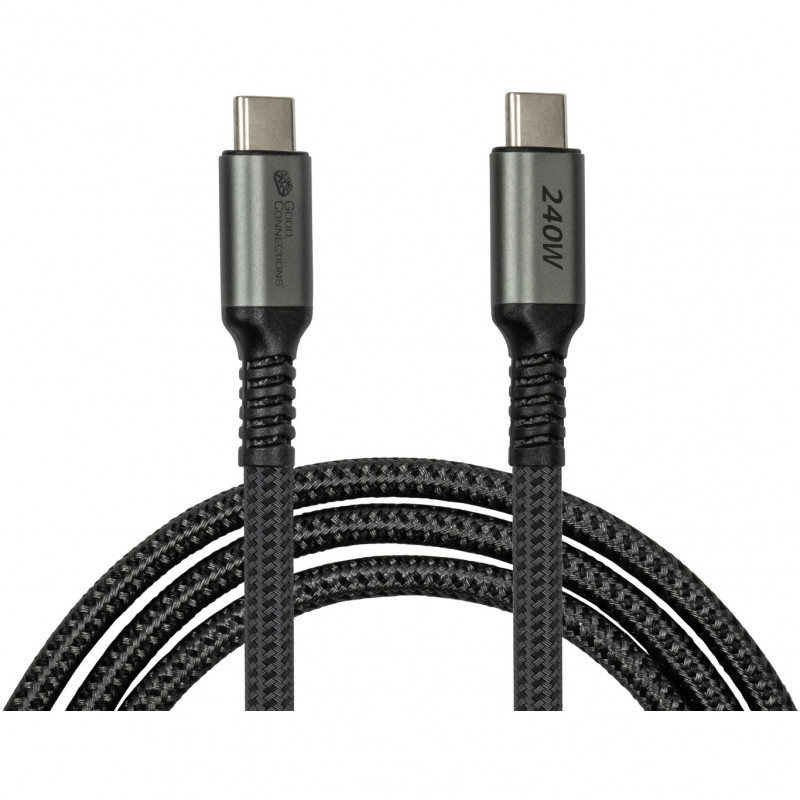 GoodConnections USB-C 2.0 (ST-ST) 1m Anschlusskabel Textilmantel 240W Anthrazit