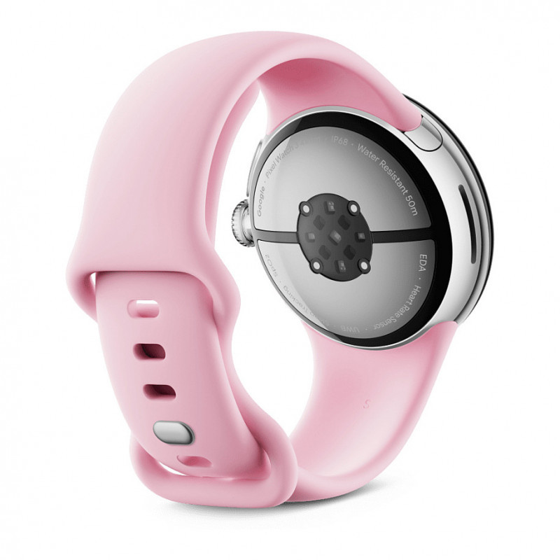 "Google Pixel Watch 3. Display technology: AMOLED, Touchscreen. RAM capacity: 2048 MB, Flash memory: 32 GB. Wi-Fi. GPS (satellite). Battery capacity: 307 mAh. Weight: 31 g. Band material: Fluoroelastomer, Band colour: Rose, Band size: S/L. Operating system installed: Wear OS"\n