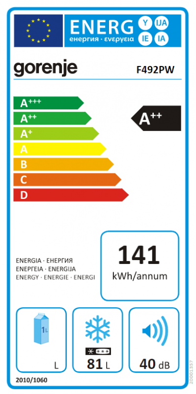 Šaldiklis Gorenje | Freezer | F492PW | Energy efficiency class E | Upright | Free standing | Height 84.5 cm | Total net capacity 85 L | White