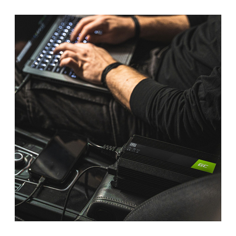 "Green Cell INV21. Purpose: Car inverter, Power supply type: Auto, Input voltage: 24 V. Product colour: Black, Cooling type: Active. Width: 209 mm, Depth: 410 mm, Height: 93 mm. Quantity per pack: 1 pc(s), Cables included: DC"\n"Green Cell Inverter