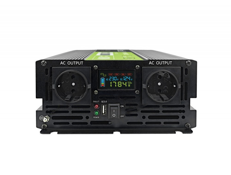 Green Cell Przetwornica napicia PowerInverter LCD 12 V 2000W/40000W Przetwornica samochodowa z wywietlaczem - czysty sinus maitinimo adapteris / inverteris Automatinis Juoda
