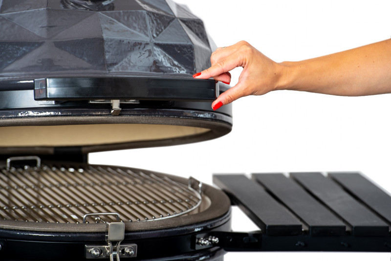 KamadoClub PRO 3 PREMIUM – 2024 metų NAUJIENA Lietuvos kamado kepsninių rinkoje! Naujausios KamadoClub kartos kepsninė su patentuota lėto nusileidimo sistema (angl. one touch), kurią sudaro vyriai, laikantys 100% dangčio svorio ir patvarus užraktas, atidarantis kepsninę vos vienu piršto paspaudimu. Dangtis, turintis lėto nusileidimo sistemą daugiau niekada nenukris ir nesitrenks į korpusą su visa jėga – jis lėtai leisis ir tyliai užsidarys palietus vos vienu piršteliu. Ugniadėžė – 2024 metų naujiena ir svarbus KamadoClub PRO 3 PREMIUM kepsninės komponentas. Aukštos kokybės, kombinuota, 7 dalių keraminė ugniadėžė, kurios atsparumas kaitrai yra maksimaliai padidintas. Naujausios technologijos eina koja kojon su KamadoClub ir mūsų komanda su džiaugsmu pristato šią naujieną, kartu su neribota garantija. Visoms KamadoClub PREMIUM tipo kepsninių ugniadėžėms bus taikoma NERIBOTA garantija, neribotą laikotarpį, visą kepsninės eksploatavimo laiką. Ugniadėžę sudaro pagrindinė-laikančioji nerūdijančio plieno konstrukcija, 5 ugniadėžės dalys, kurios susideda į vieną visumą ir specialus konstrukcinis žiedas. Patogu ir ilgaamžiška. Šoninės lentynos pagamintos iš metalo, o rankena - ilgaamžišku, priežiūros nereikalaujančiu, aukštos kokybės, kepsninės spinduliuojamam karščiui atspariu HDPE plastiku, kuris ir po kelerių metų, intensyvaus naudojimo vis dar atrodys kaip naujas, nededant jokių pastangų. Kepsninės komplektacijoje yra pelenų surinkimo sistema, kurios pagalba pelenų valymas taps patogiu ir itin paprastu procesu. Ir tai dar ne viskas! PRO 3 komplekte yra pastorinto metalo anglių krepšys, kurio pagalba efektyviai ir mažesnėmis sąnaudomis naudosite medžio anglį. Tobulas komplektas!