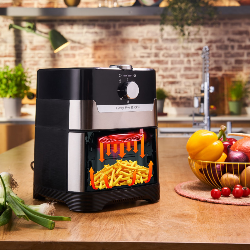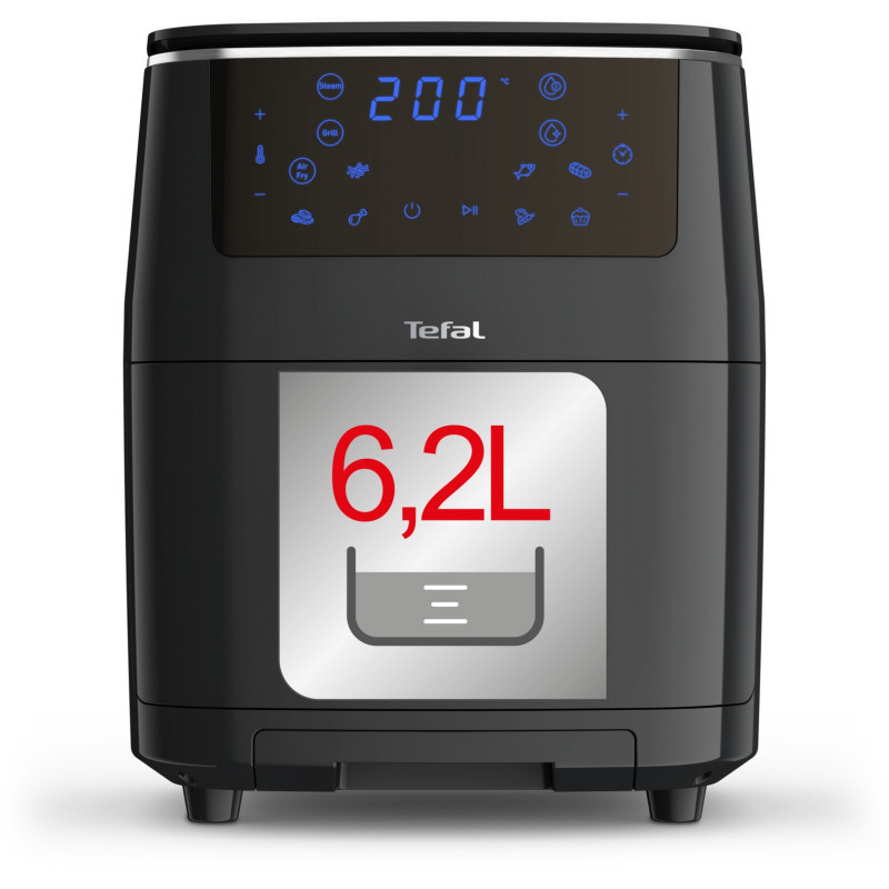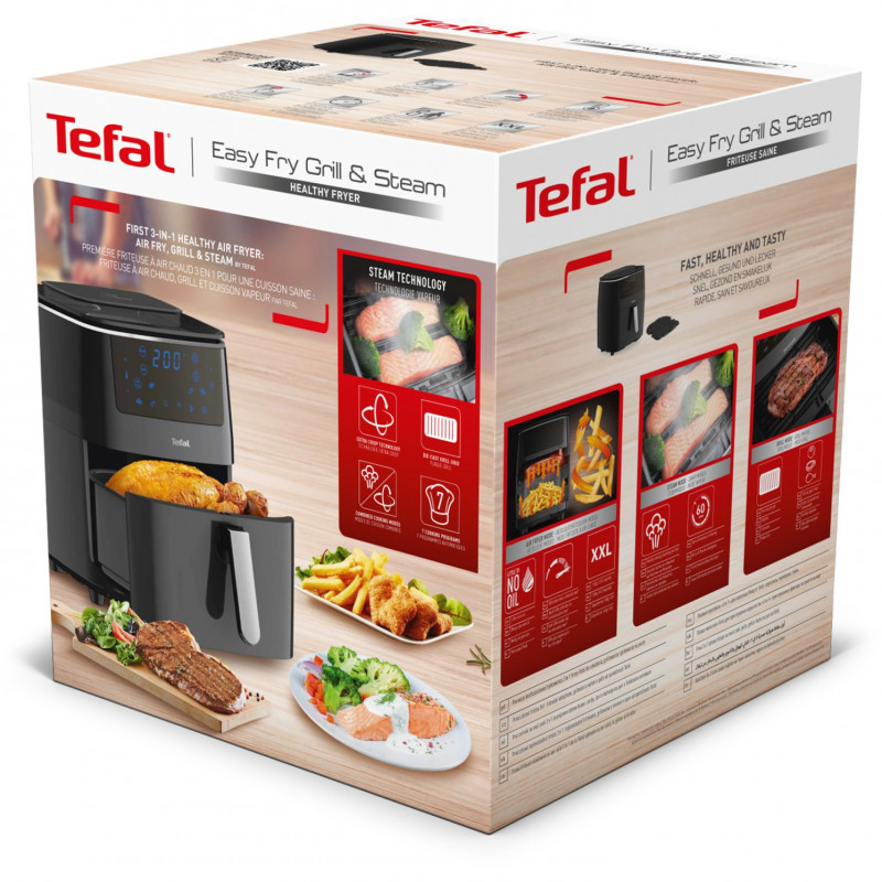 "Tefal Easy Fry Grill & Steam FW2018. Product type: Hot air fryer, Fryer food capacity: 1.6 kg, Temperature (min): 80 °C. Construction type: Single, Product colour: Black, Control type: Touch. Display type: LCD. Power: 1700 W. Width: 324 mm, Depth: 407 mm, Height: 399 mm"\n