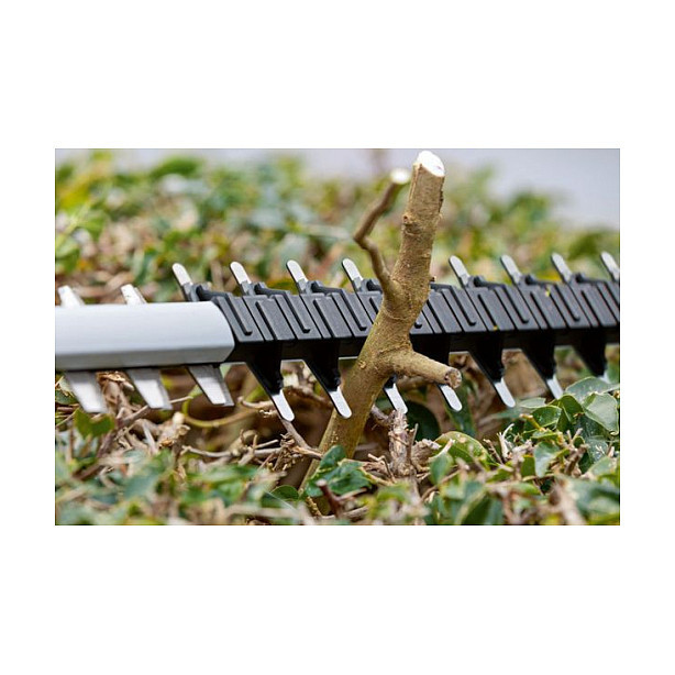 "Bosch GHE 18V-50 Professional. Blade size: 50 cm, Blade type: Single blade, Stroke rate: 3000 spm. Power source: Battery, Battery voltage: 18 V. Weight: 2.6 kg, Width: 1006 mm, Depth: 239 mm. Package width: 245 mm, Package depth: 1075 mm, Package height: 220 mm"\n"The GHE 18V-50 Professional cordless hedge cutter is easy to handle thanks to its ergonomic design. The powerful brushless motor provides continuous trimming for medium-density hedges. With a cutting capacity of 20 mm, you can also cut thicker branches easily and comfortably. When trimming stubborn branches, the patented Bosch Anti-Blocking System prevents the cutting blades from jamming via electronic detection and automatic repetition of the cut. Thanks to its light weight, optimal balance, and ergonomic design, the cordless hedge cutter is well suited for longer work. The cordless hedge cutter's low noise level and emission-free operation make it the ideal tool for working in residential or other noise-sensitive areas."