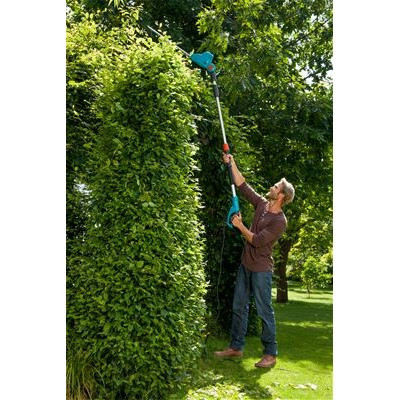 Gardena Elektro-Teleskop-Heckenschere THS 500/48 – tai galingas ir patogus įrankis, skirtas aukštų gyvatvorių ir krūmų priežiūrai. Dėl teleskopinės rankenos ir pasukamos pjovimo galvutės galėsite lengvai pasiekti sunkiai pasiekiamas vietas, nesistengdami ant kopėčių.