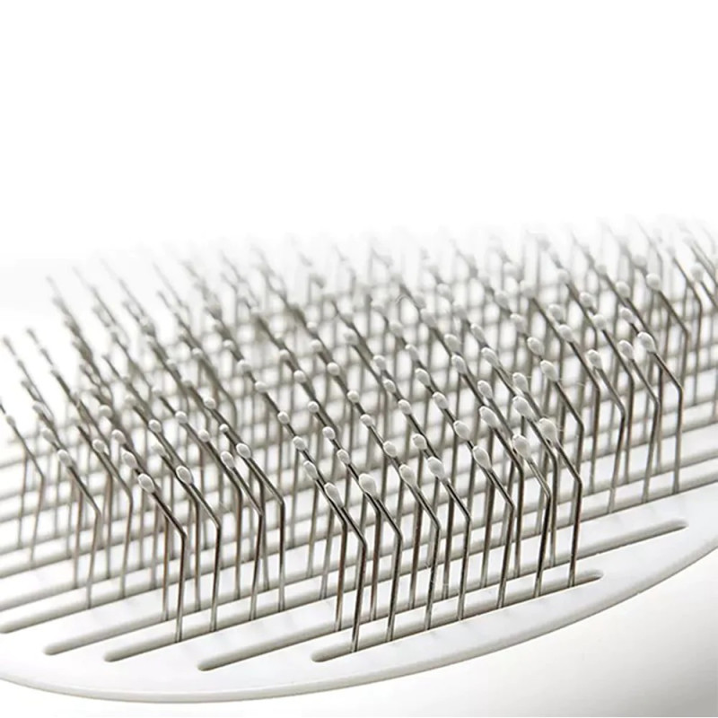 The push-to-release button is super easy to remove the hair from the brush quickly. The push-to-release button is super easy to remove the hair from the brush quickly. Rounded metal tines protect pets’ sensitive skin. Rounded metal tines protect pets’ sensitive skin. Suitable for all breeds and all types of fur coats. |