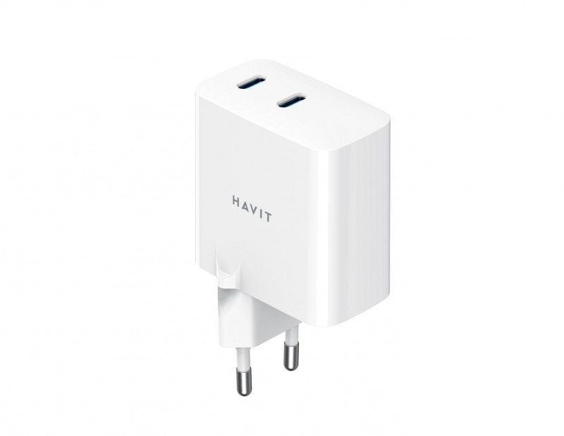 Havit UC45 EU - GaN 45 W dviejų prievadų kelioninis įkroviklis, juodas
