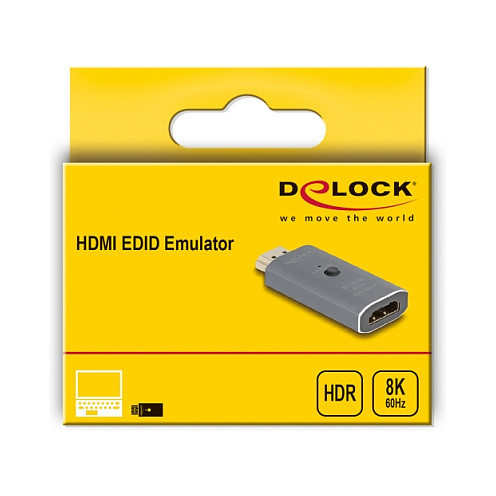 "DeLOCK 64324. Connector 1: HDMI, Connector 2: HDMI. Product colour: Anthracite"\n"This adapter by Delock emulates a monitor so that the signal source does not switch off the signal or change the resolution, even without a connected monitor. The adapter contains a standard set of EDID/DDC data, but it can also read and save the data of a connected monitor."