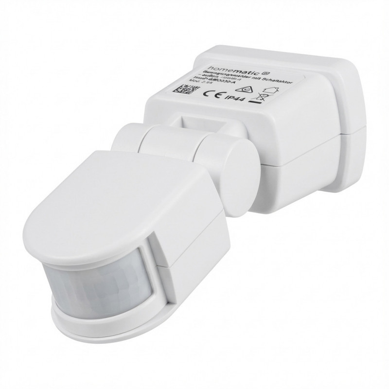 "Homematic IP Bewegungsmelder mit Schaltaktor. Mounting type: Wall, Placement: Indoor, Outdoor, Product colour: White. Sensor type: Twilight sensor, Connectivity technology: Wired & Wireless, Operating frequency: 868.0 - 868.6 MHz. Power source type: AC, Power consumption (standby): 0.5 W, Input frequency: 50 Hz. Width: 78 mm, Depth: 140 mm, Height: 126 mm. Package width: 185 mm, Package depth: 280 mm, Package height: 97 mm"\n"With the smart motion detector with switch actuator - outdoor, you can immediately detect movement outdoors and use various functions in your smart home.