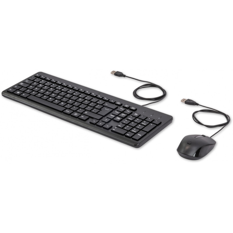"HP 150 Wired Mouse and Keyboard. Keyboard form factor: Full-size (100%), Connectivity technology: Wired, Device interface: USB, Keyboard key switch: Membrane, Keyboard layout: QWERTY. Cable length: 1 m. Recommended usage: Universal. Product colour: Black. Mouse included"\n"Sometimes everything just clicks