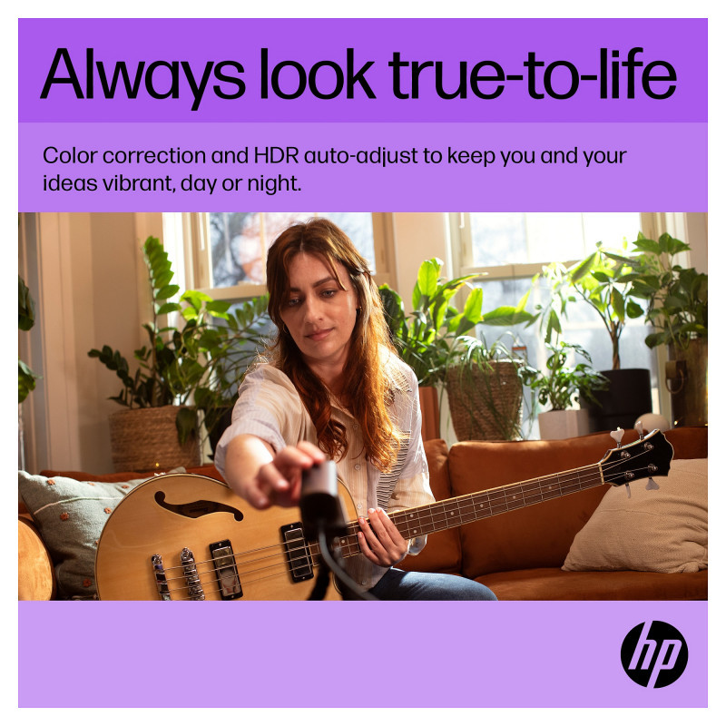 Hop on the call with instant ease, looking and sounding great. Just plug in this wide-view FHD 1080p[3] all-in-one webcam and let it do the rest, so you can focus on what matters. It also features auto image and light correction, Works With Chromebook Certification[1,2], and a lens cover for privacy."