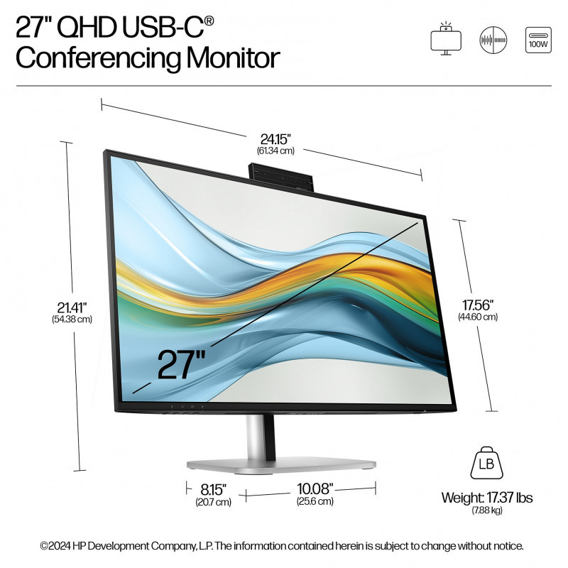 Feel confident collaborating effortlessly with the HP Series 5 Pro 27"" QHD USB-C Conferencing Monitor. Achieve distraction-free meetings, wherever you work, with advanced AI. Settle into total comfort thanks to a customizable setup."