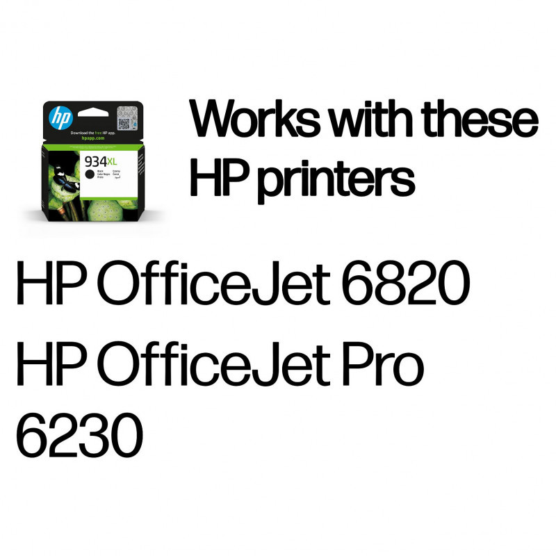"HP 934XL High Yield Black Original Ink Cartridge. Cartridge capacity: High (XL) Yield, Black ink type: Pigment-based ink, Black ink volume: 25.5 ml, Printing colours: Black, Quantity per pack: 1 pc(s), Black ink page yield: 1000 pages"\n"Ideal for producing high-quality business documents you can count on – at a better value for frequent printing.[1]