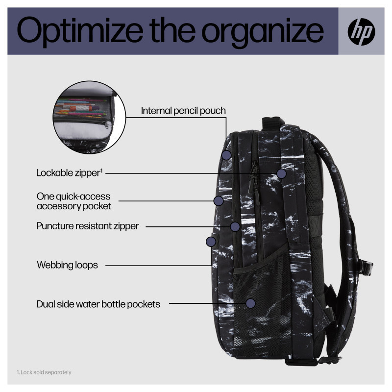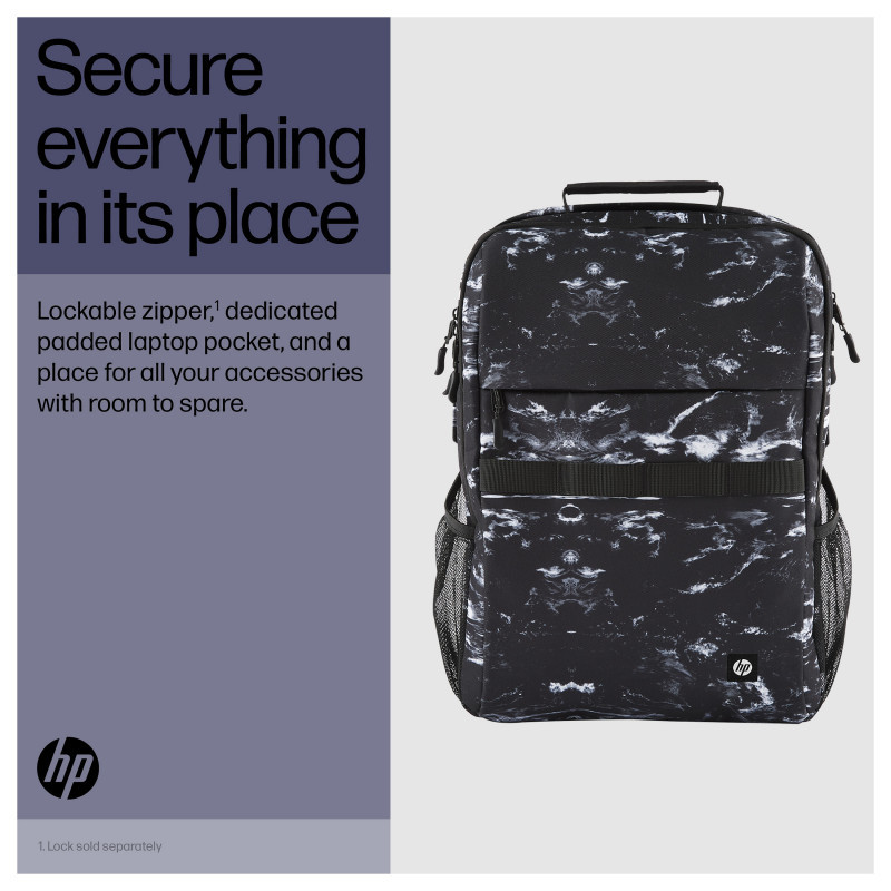 "HP Campus XL Marble Stone Backpack. Case type: Backpack. Weight: 620 g"\n"Secure Everything in its Place