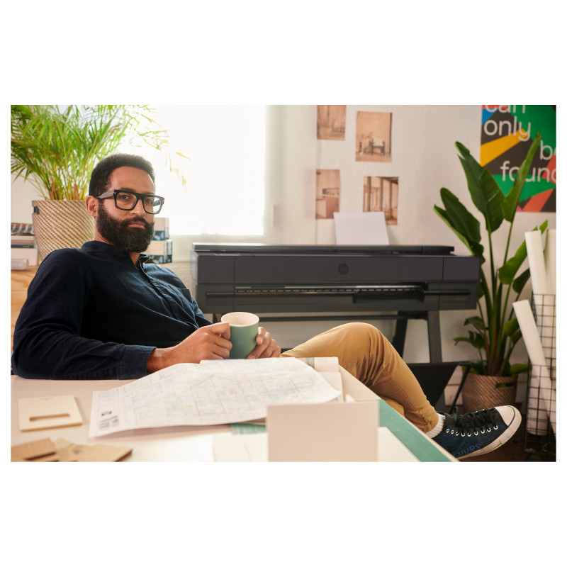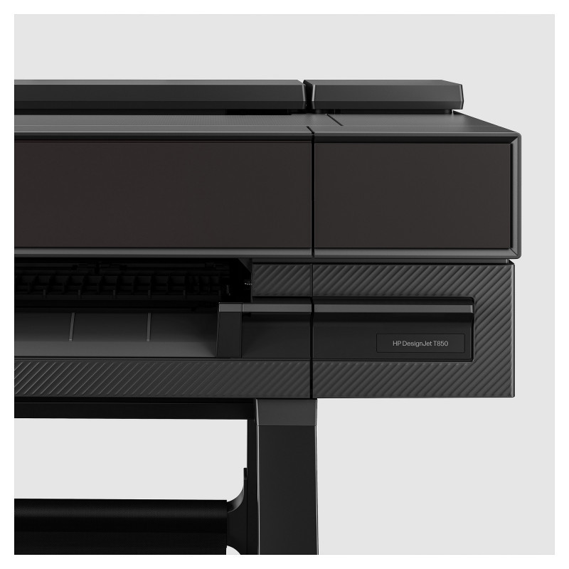 "HP Designjet T850 36-in Printer. Print technology: Thermal inkjet, Maximum resolution: 2400 x 1200 DPI, Page description languages: HP-GL/2, TIFF, JPEG, HP-RTL, CALS G4, URF. Maximum print size: A0 (841 x 1189 mm), Paper tray media types: Coated paper, Plain paper, Bond paper, Photo paper, Matte paper, Banner, Heavy paper, Satin paper, ISO A-series sizes (A0...A9): A0, A1, A2, A3, A4. Ethernet LAN data rates: 1000 Mbit/s, Mobile printing technologies: Apple AirPrint. Product colour: Black, Internal memory: 1024 MB, Country of origin: China, Thailand, Switzerland. Power consumption (off): 0.2 W, Power consumption (sleep): 2.5 W, AC input voltage: 100 - 240 V"\n" Maximize your team’s agility with the world’s easiest A4-A0 experience.[1] Simplify multi-size printing with the integrated input tray. Streamline print workflows with HP Click. And meet office and environmental needs with this compact plotter.