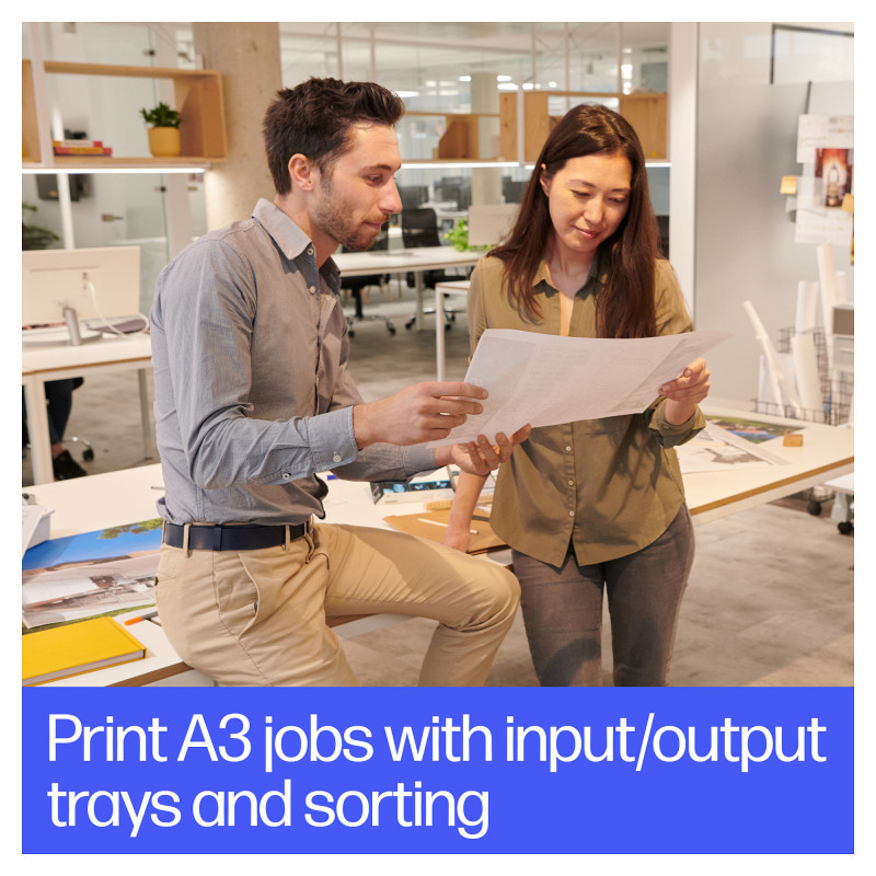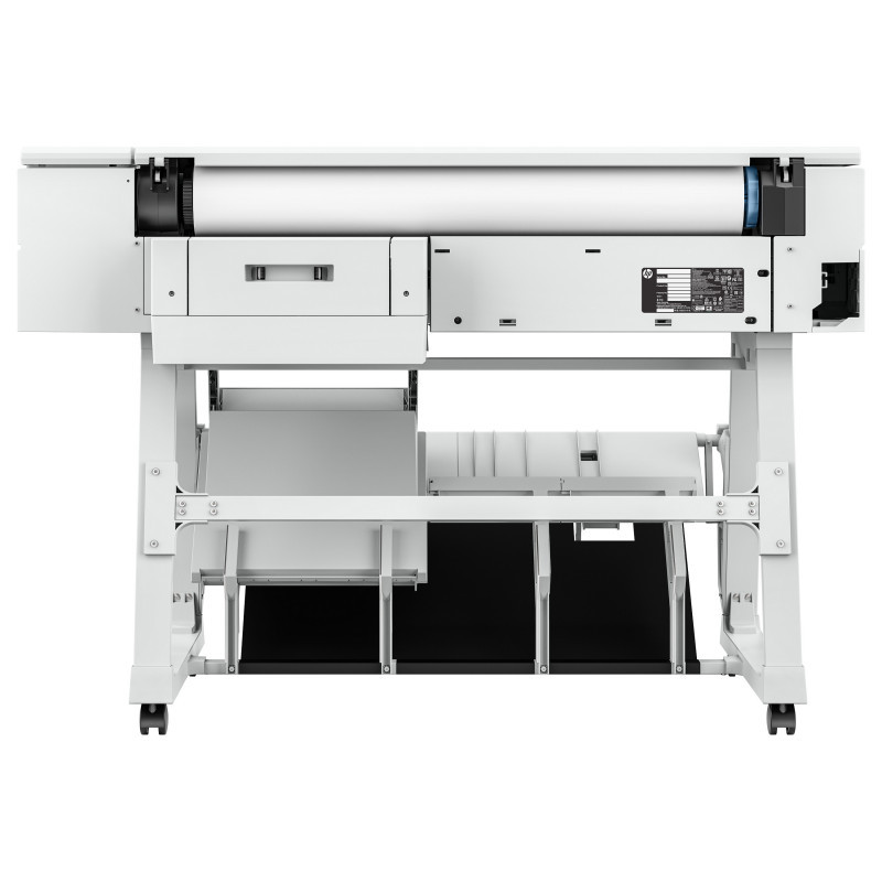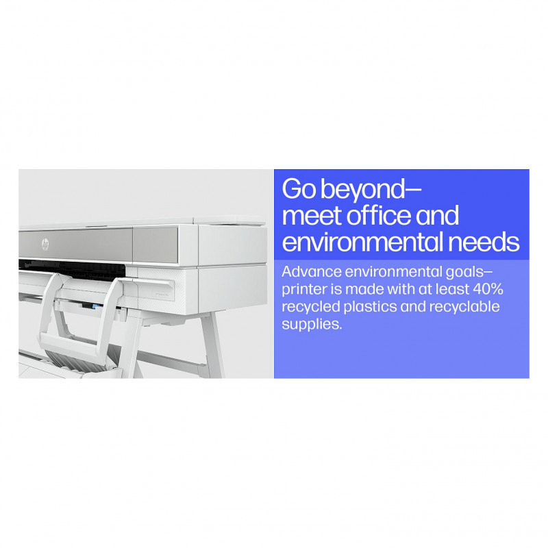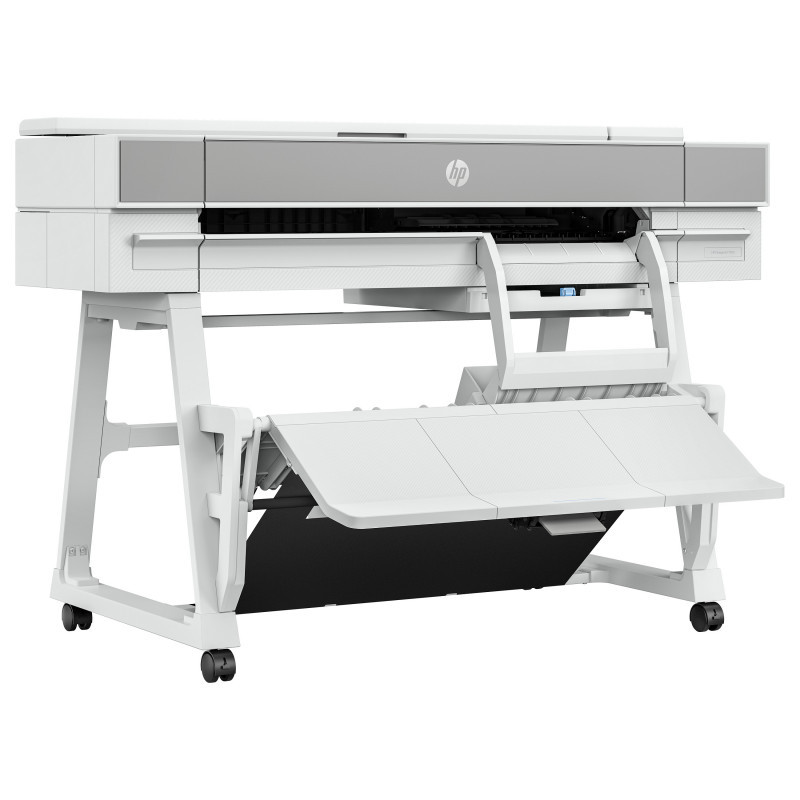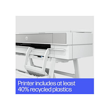 "HP DesignJet T950 36-in Printer. Print technology: Thermal inkjet, Maximum resolution: 2400 x 1200 DPI, Page description languages: PDF, HP-GL/2, TIFF, JPEG, HP-RTL, CALS G4, URF. Maximum print size: A0 (841 x 1189 mm), Paper tray media types: Coated paper, Plain paper, Bond paper, Photo paper, Matte paper, Banner, Heavy paper, Satin paper, ISO A-series sizes (A0...A9): A0, A1, A2, A3, A4. Ethernet LAN data rates: 1000 Mbit/s, Mobile printing technologies: HP ePrint. Product colour: White, Internal memory: 1024 MB, Country of origin: China, Thailand, Switzerland. Power consumption (standby): 0.2 W, Power consumption (typical): 30 W, Power consumption (off): 0.2 W"\n" Boost productivity with the world’s most efficient A4-A0 experience.[1] Do it all—print multi-size CAD and renders with the integrated input/output tray. Save time with HP Click. And go beyond with this robust and compact plotter.