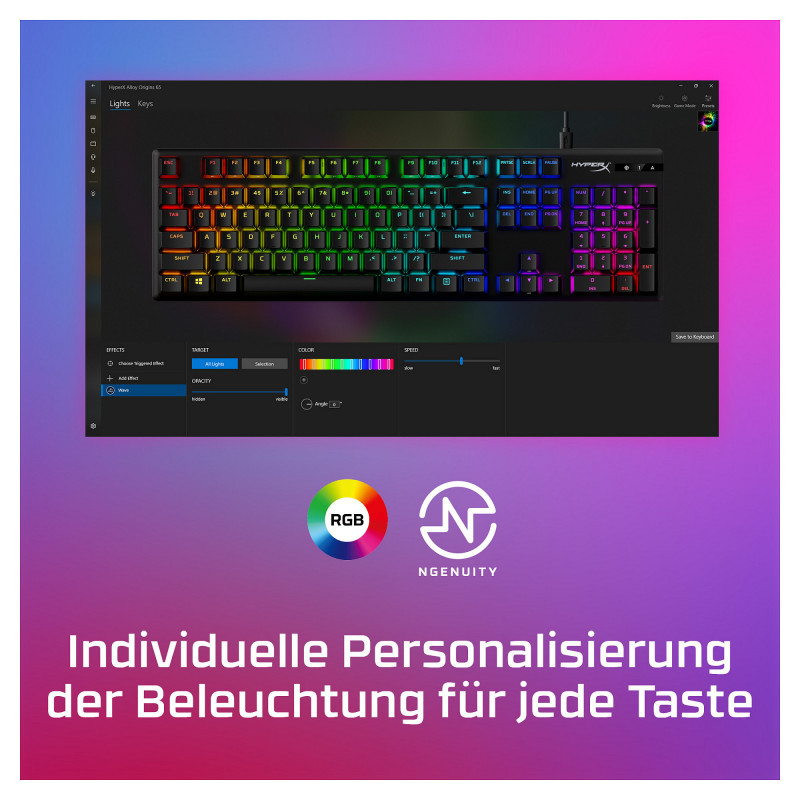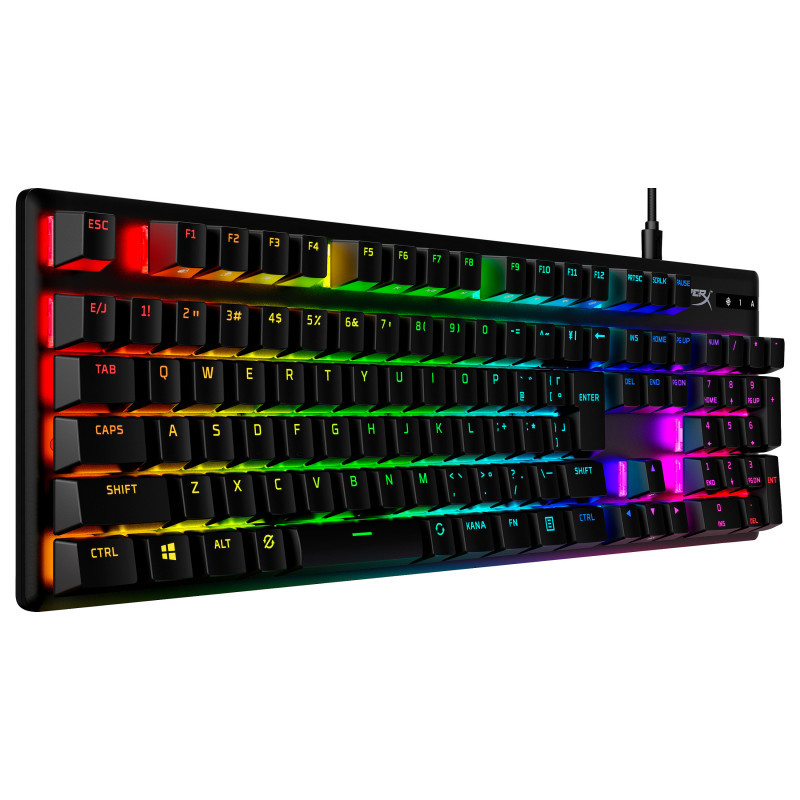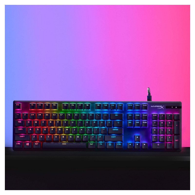 The HyperX Alloy Origins PBT is a compact, sturdy keyboard featuring custom HyperX mechanical switches designed to give gamers the best blend of style, performance, and reliability. This version ups durability by adding pre-installed PBT keycaps with side-printing. HyperX’s mechanical key switches are built with exposed LEDs so more of the light output is visible, providing more brilliant, stunning lighting. They’re also tuned with an actuation force and travel distance that is elegantly balanced for responsiveness and accuracy. Alloy Origins is built with a full aluminum body, so it stays rigid and stable, and also features keyboard feet for three different tilt angles. It’s a full-sized keyboard layout with a compact design so it won’t crowd out your desktop, and it also features a detachable USB-C cable for portability. Customize your lighting, craft macros, and adjust Game Mode with powerful, easy-to-use HyperX NGENUITY Software."