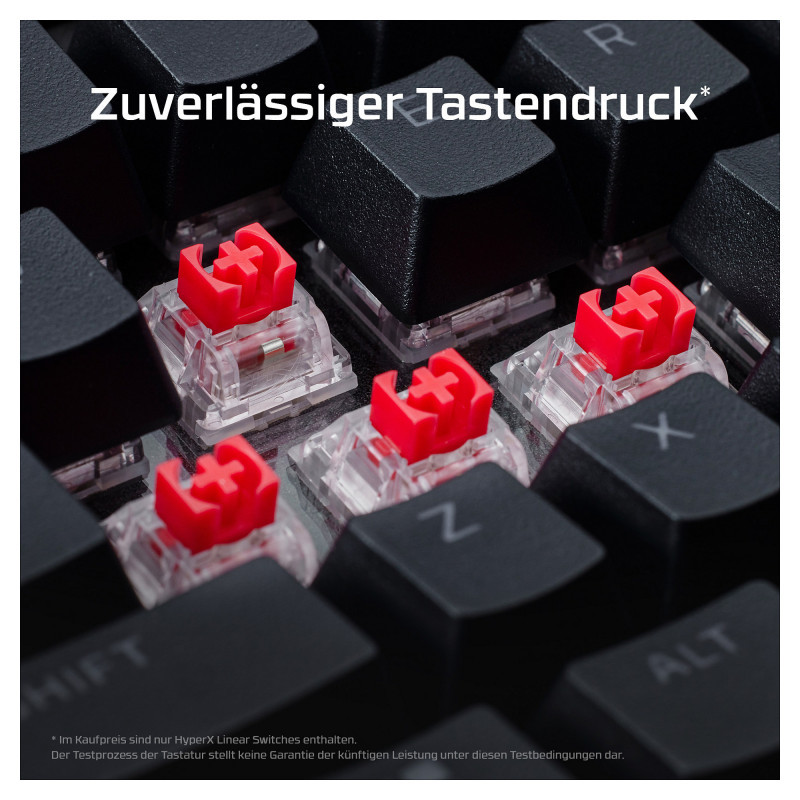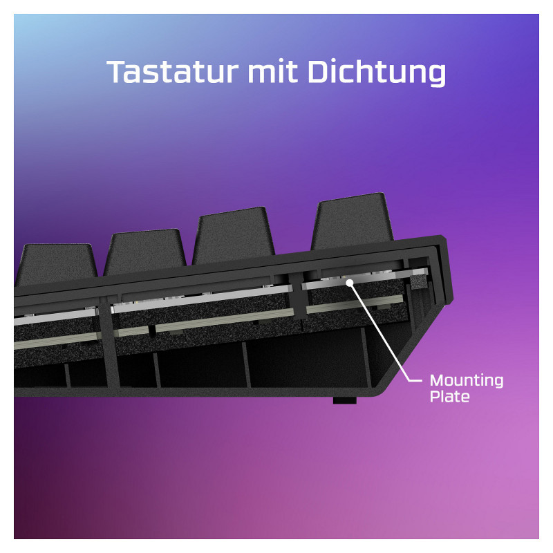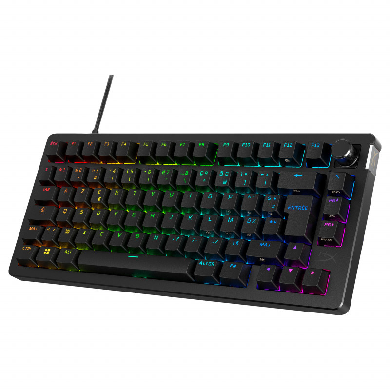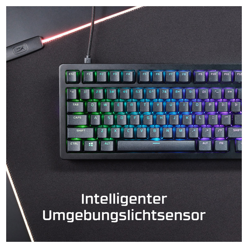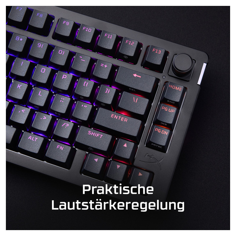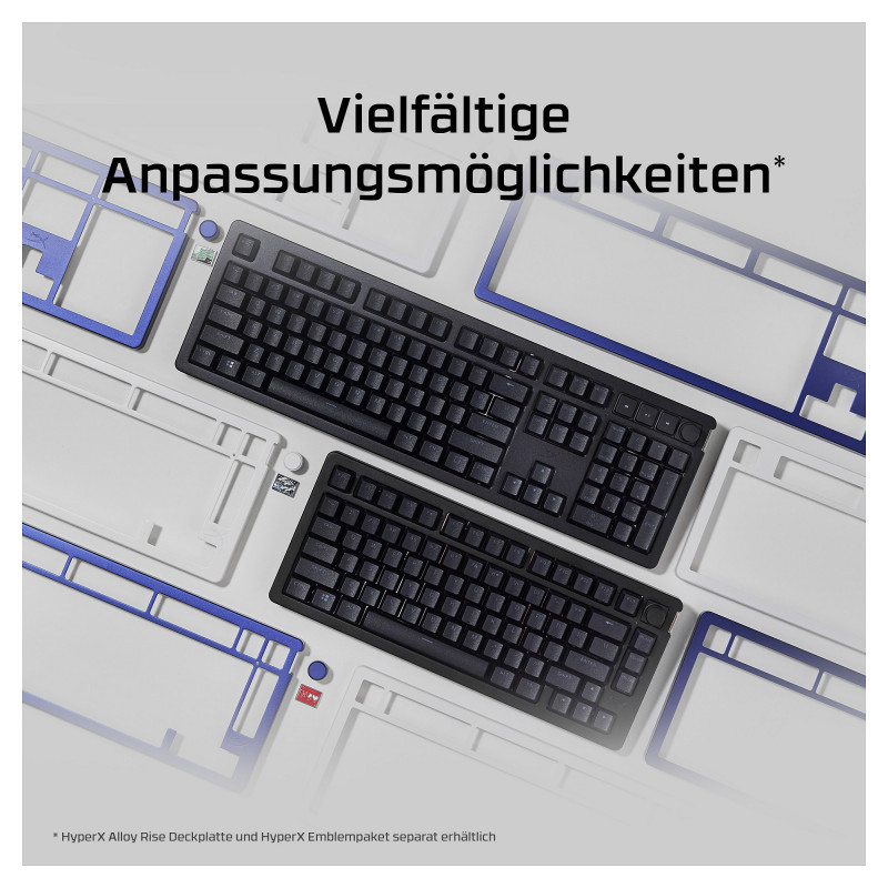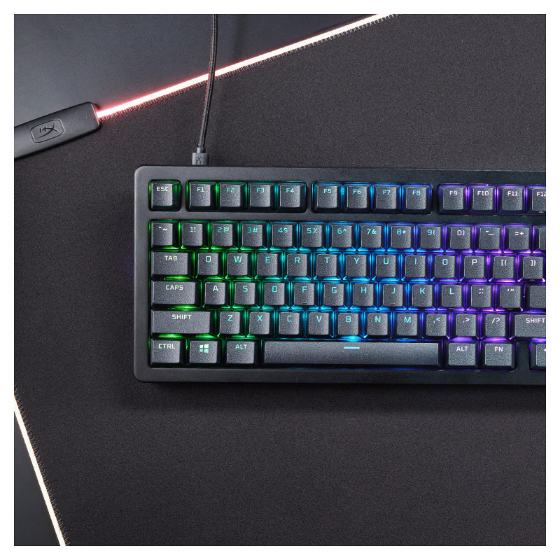 "HyperX Alloy Rise 75 - Gaming Keyboards. Keyboard form factor: 75%, Connectivity technology: Wired, Device interface: USB, Keyboard key switch: Mechanical. Backlight type: RGB LED. Cable length: 1.8 m. Recommended usage: Gaming. Product colour: Black"\n"The 75% gaming keyboard, elevated.
