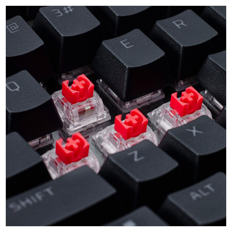 As the world's most customizable toolless mechanical gaming keyboard on the market5, the HyperX Alloy Rise 75 takes personalization to the next level. Not only can you hot-swap in key switches, but also magnetic top plates, badges, and more. All that customization is built onto its compact, solid frame and ultra-responsive 8k polling rate, giving you rapid keypress detection and more room. Out of the box, this keyboard features pre-lubed HyperX Linear Switches rated for up to 80 million keypresses1 as well as pre-installed HyperX PBT Keycaps. The 75% form factor is a great balance between compactness and function, providing dedicated arrow keys, navigation keys, and F keys. You’ll also get an upgraded RGB experience courtesy of the ambient light sensor that auto-adjusts the brightness, 10 keyboard profiles saved directly to the keyboard, and powerful customization via HyperX NGENUITY Software. Get one step closer to your endgame with the HyperX Alloy Rise 75."
