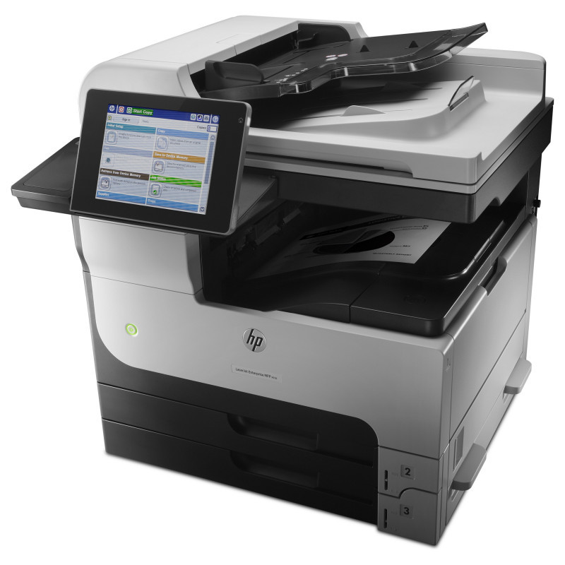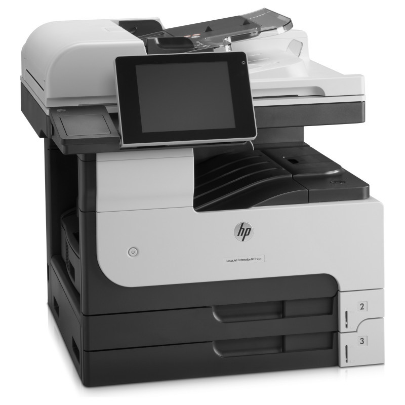 "HP LaserJet Enterprise MFP M725dn. Print technology: Laser, Printing: Mono printing, Maximum resolution: 1200 x 1200 DPI. Copying: Mono copying, Maximum copy resolution: 600 x 600 DPI. Scanning: Colour scanning, Optical scanning resolution: 600 x 600 DPI. Duplex functions: Print. Maximum ISO A-series paper size: A3. Direct printing. Product colour: Black, Grey"\n"Print high-quality documents on an array of paper sizes up to A3, launch one-touch workflows, and manage jobs on the desktop with touchscreen ease. Enable large-volume printing on a wide range of paper sizes – up to A3 – with a 4,600-sheet maximum input capacity.[1] Preview and edit scanning jobs; centrally manage printing policies; safeguard sensitive business information.
