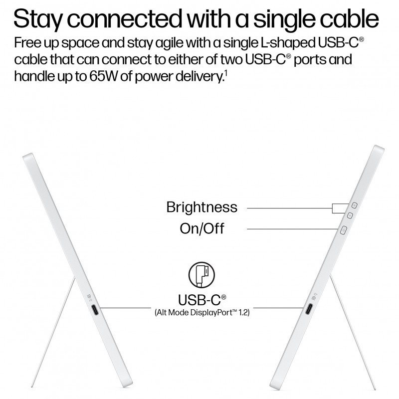 "HP Series 5 Pro 14 inch WQXGA Portable Monitor - 514pn. Display diagonal: 35.6 cm (14""), Display resolution: 2560 x 1600 pixels, HD type: WQXGA, Display technology: LCD, Display surface: Matt, Response time: 7 ms, Native aspect ratio: 16:10, Viewing angle, horizontal: 178°, Viewing angle, vertical: 178°. Product colour: Silver"\n"Transform every space into a dual display workspace