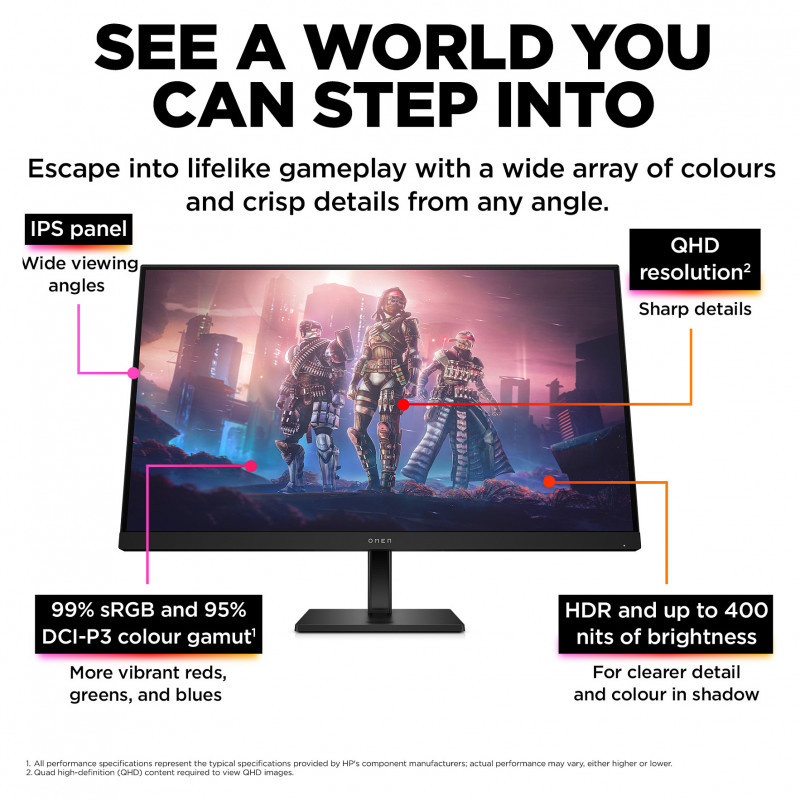 Reach new possibilities with the OMEN by HP 31.5-inch QHD 165Hz Gaming Monitor. Quick performance and vibrant color let you get lost in the games you love most, while the sleek design functions to look and feel great on your desk."