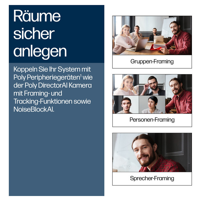 Poly Studio G62 conferencing system features easy setup, seamless integration, and the customization you need. Powerful collaboration tools? Done. Advanced audiovisual options? Check. A flexible setup? You got it[1]."