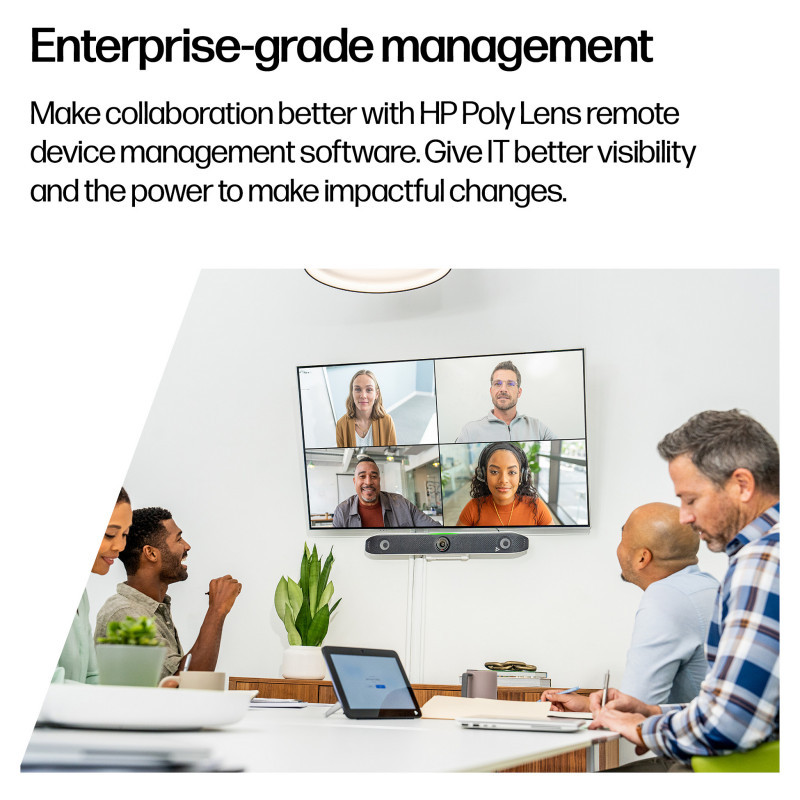 Poly Lens, remote device management, gives you better visibility into workspaces across the entire organization. IT professionals can remotely monitor and troubleshoot Poly devices as well as streamline applying bulk software and policies."