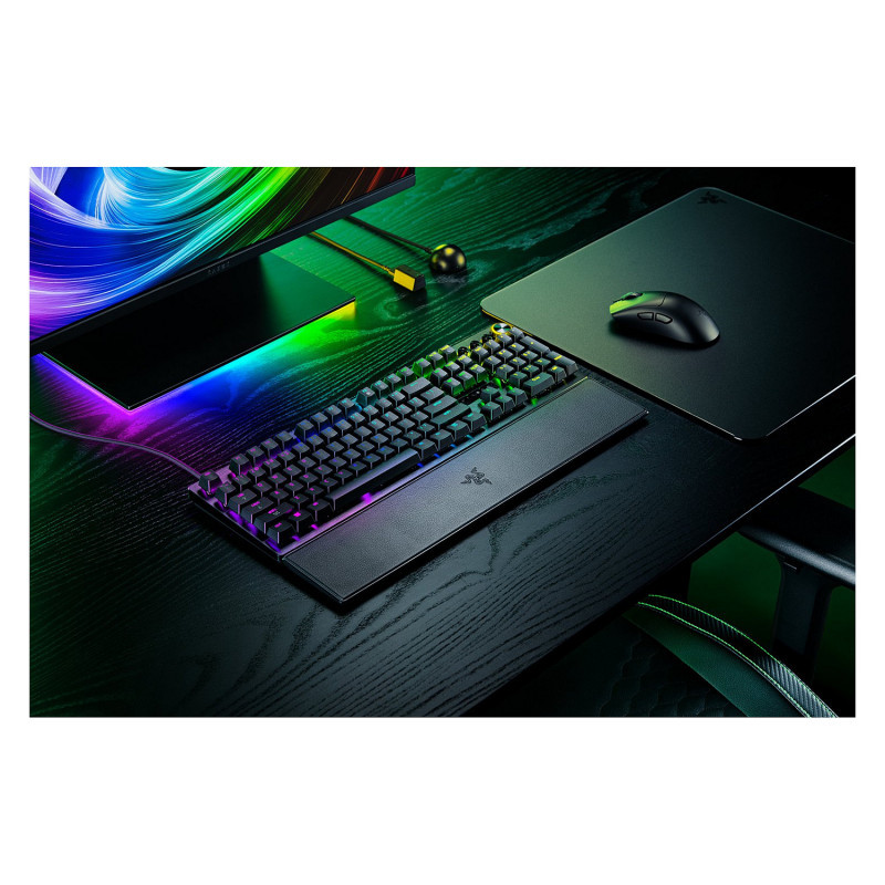 "Razer Huntsman V3 Pro 8KHz. Keyboard form factor: Full-size (100%), Connectivity technology: Wired, Device interface: USB, Keyboard key switch: Opto-mechanical key switch, Keyboard layout: QWERTY. Backlight type: RGB LED, Wrist rest. Recommended usage: Gaming. Product colour: Black"\n