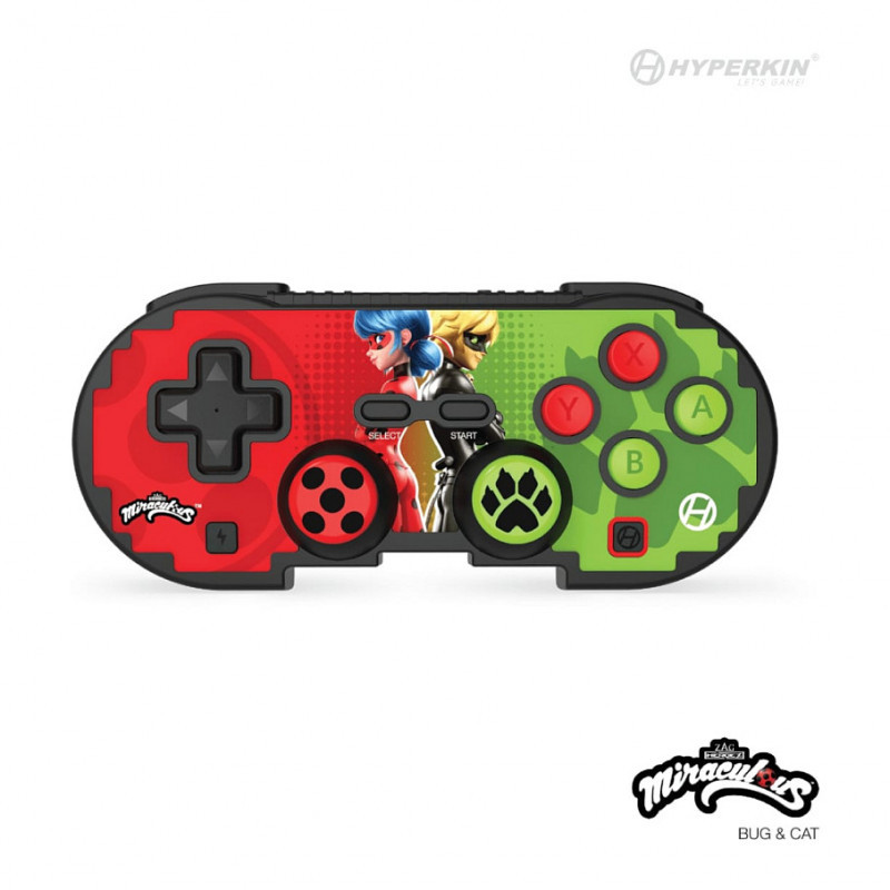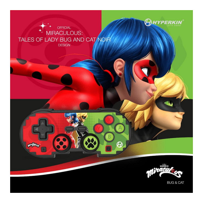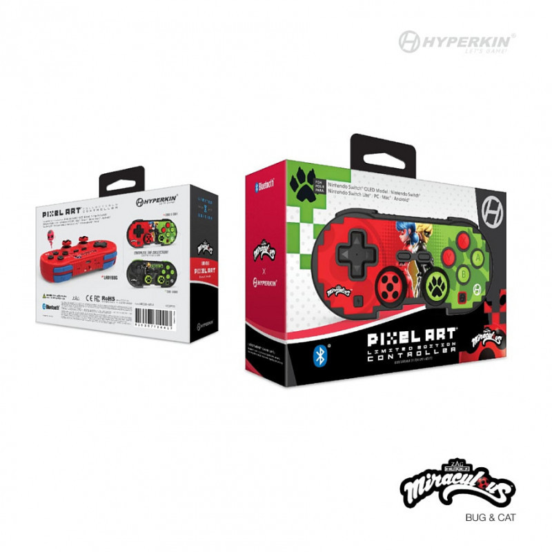 "Hyperkin Pixel Art Bluetooth Controller Official Miraculous Edition (Ladybug & Cat). Device type: Gamepad, Gaming platforms supported: Nintendo Switch, Nintendo Switch Lite, Nintendo Switch OLED. Connectivity technology: Wireless, Device interface: Bluetooth, Wireless range: 9 m. Product colour: Green, Red. Power source: Battery. Windows operating systems supported: Windows 10, Windows 11, Mobile operating systems supported: Android, iOS"\n