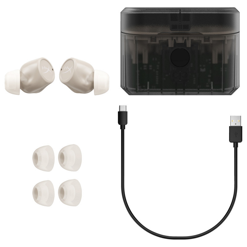 Move through the commotion of the world instead without letting it into yours. HyperX Cirro Buds Pro True Wireless Earbuds feature hybrid ANC so you can enjoy your favorite mobile game, audiobook, or music without the soundtrack of the day interposing. If you prefer to keep an ear open for the next stop, or stay alert, choose Ambient Sound Mode to allow a bit of the background noise through. With a Bluetooth 5.2 connection, you’ll get a hassle-free, low-latency connection for your mobile games. Cirro Buds Pro are IPX4 rated, so they’re certified tough enough for you to crush your competition and crush a workout. They last up to 35 hours on a full charge[1] and can be fully charged in just 40 minutes. These versatile wireless earbuds are also built to prioritize comfort, with 3 sets of included ear tips so you can find a secure fit that’s right for you."
