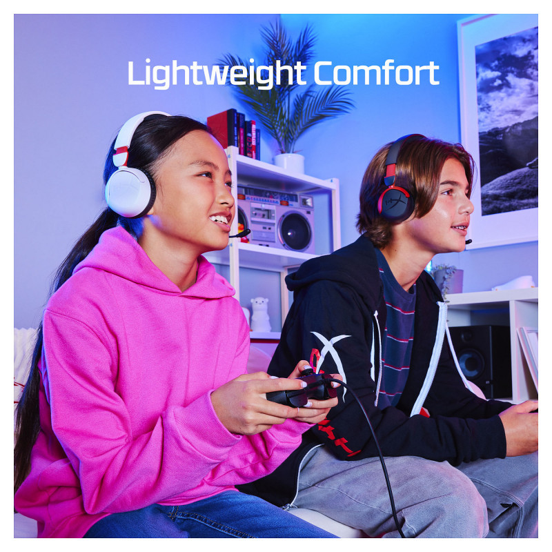 The HyperX Cloud Mini is a comfortable wired headset built for aspiring star gamers. Recommended for ages 8-12, it’s lightweight and appropriately sized for younger gamers, and more importantly, it’s designed to keep audio levels below 85dB[1]. It features a clear, flip-to-mute mic so younger gamers can chat with their friends online, and it can be tucked away when not in use[3]. The earcups can be rotated when it’s time to take a break, and they’re also great for easy transport or storage. Cloud Mini can easily connect to any device that has a 3.5mm connection, so whether your young gamer is playing on mobile, Chromebook, Nintendo Switch, PlayStation, PC, Steam Deck, or elsewhere, this versatile headset will be ready for it[2]."
