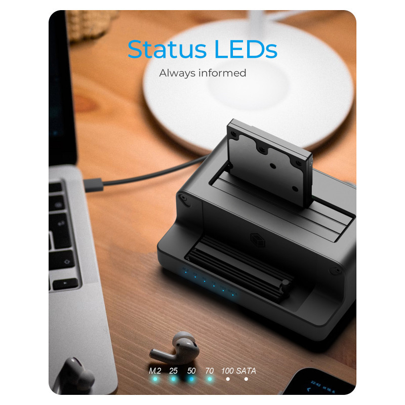 There is no such thing as complicated with ICY BOX. The installation of the cloning station or the change of storage media is very simple and can be done in a flash without tools. It does not matter whether the 2.5""/3.5"" hard disk or the M.2 NVMe SSD is to be installed."