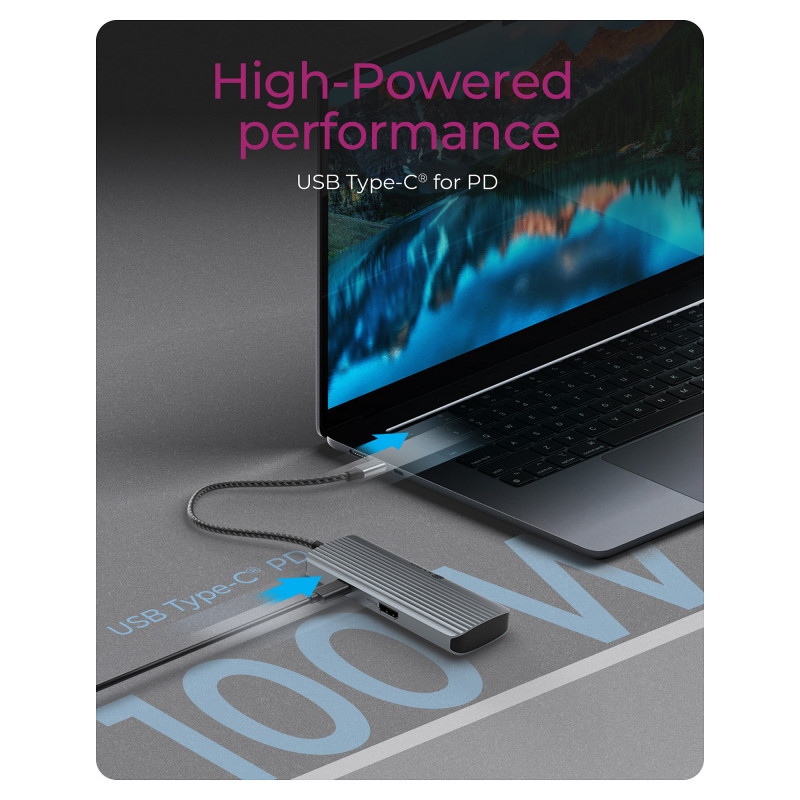 "ICY BOX IB-DK4022a-CPD. Connectivity technology: Wired, Host interface: USB 3.2 Gen 1 (3.1 Gen 1) Type-C, USB Power Delivery up to: 100 W. Product colour: Aluminium, Silver, Data transfer rate: 5 Gbit/s, HD type: 4K Ultra HD. Power source type: USB, Output voltage: 20 V, Output current: 5 A. Width: 113 mm, Depth: 45 mm, Height: 15 mm. Package weight: 172 g"\n