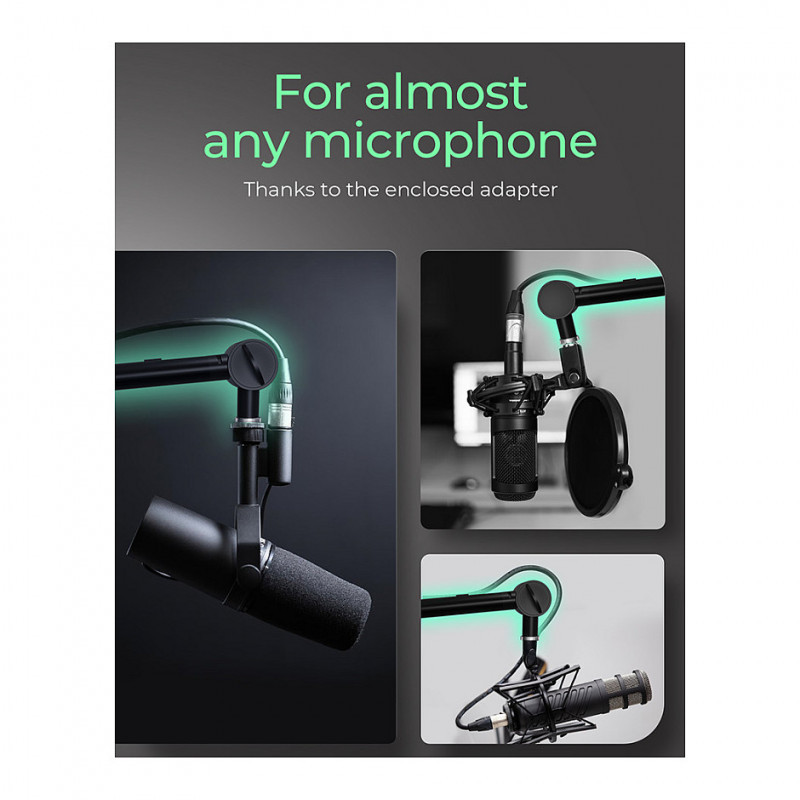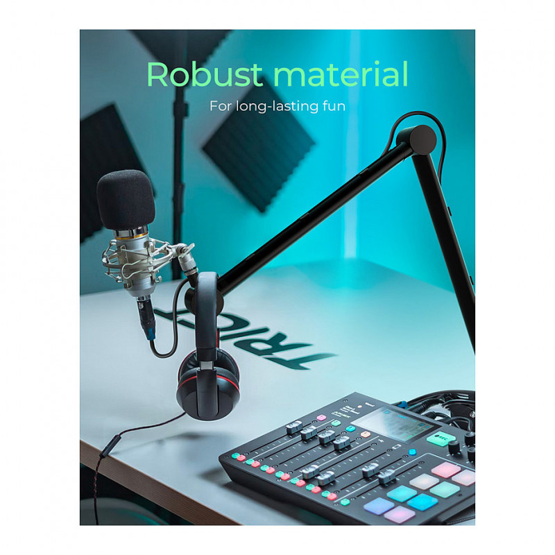 The microphone arm offers a flexible microphone position that can be aligned according to your wishes. This is helped by the 360° rotatable boom, which is also equipped with a rotary knob for fixing the desired position.