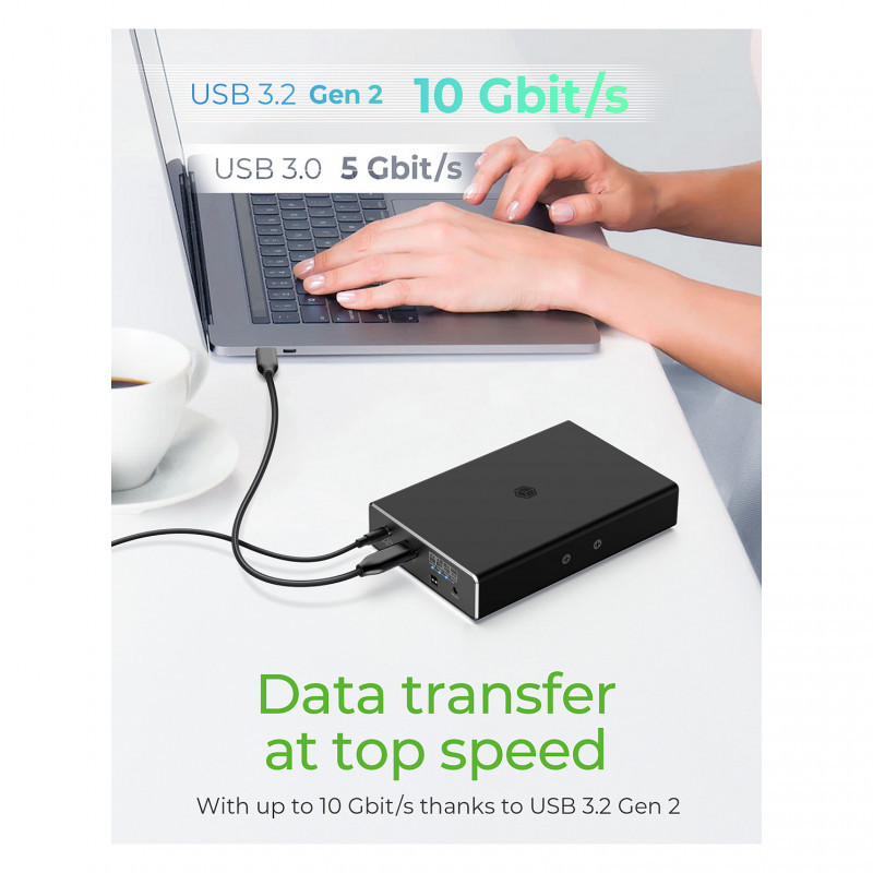 With USB 3.2 Gen 2 you enjoy data transfer rates of up to 10 Gbit/s without waiting times or delay and can transport files from one drive to another within seconds. To suit your current equipment best, the IBRD2253- C31 comes fully equipped with both a USB Type-C® and a Type-A cable.