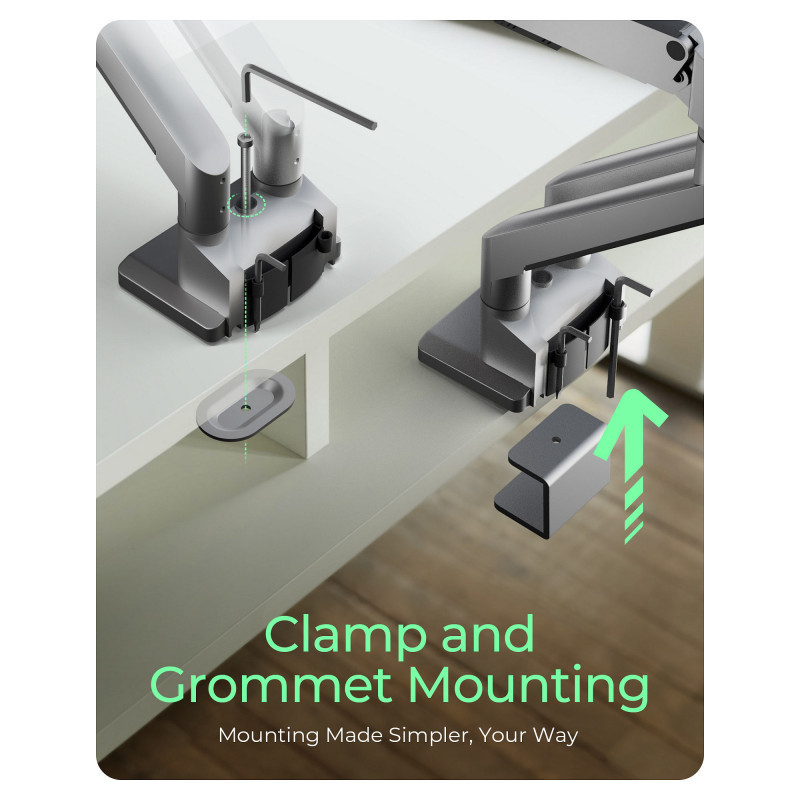 "ICY BOX IB-MS524-T. Mounting: Clamp/Grommet, Maximum weight capacity: 18 kg, Minimum screen size: 43.2 cm (17""), Maximum screen size: 81.3 cm (32""), Minimum VESA mount: 75 x 75 mm, Maximum VESA mount: 100 x 100 mm. Height adjustment, Swivel angle range: -90 - 90°, Tilt angle range: -45 - 90°. Product colour: Grey, Silver"\n