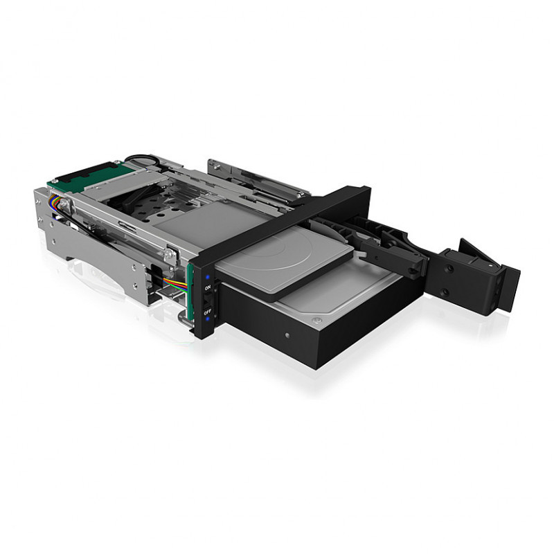 Fits into a 5.25"" bay and offers space for one 2.5"" and one 3.5"" drive. Both drives have their own connection and work independetly of each other. A data transfer rate of up to 6 Gbit/s can be achieved.