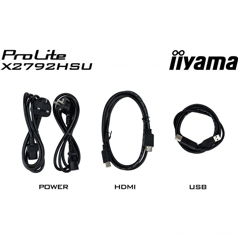"iiyama ProLite X2792HSU-B1. Display diagonal: 68.6 cm (27""), Display resolution: 1920 x 1080 pixels, HD type: Full HD, Display technology: LED, Display surface: Matt, Response time: 3 ms, Native aspect ratio: 16:9, Viewing angle, horizontal: 178°, Viewing angle, vertical: 178°. Built-in speaker(s). Built-in USB hub, USB hub version: 3.2 Gen 1 (3.1 Gen 1). VESA mounting. Product colour: Black"\n"The ProLite X2792HSU is a 27'' Full HD monitor ideal for professionals who need more screen space, precise image quality, and a sustainable choice. Packaged without plastic and made from 85% post-consumer recycled materials, it meets TCO Certification and EPEAT® Silver standards. Its IPS panel delivers sharp detail, vibrant colours and wide viewing angles, while the frameless design creates a sleek, distraction‑free workspace. To take care of your eye health, it complies with the Eye Safe and Eye Comfort Certifications."