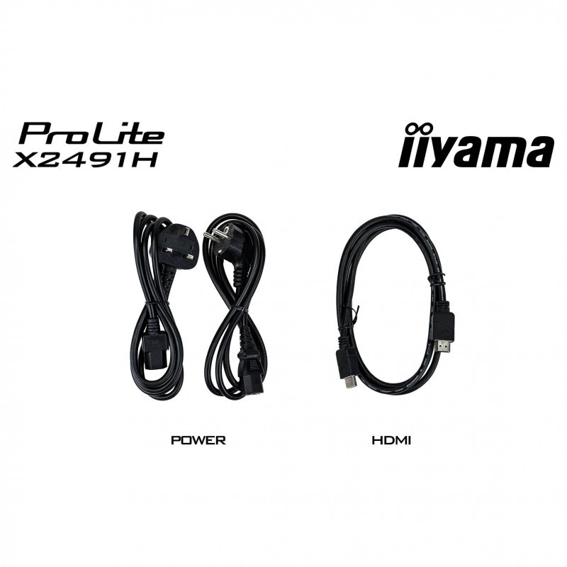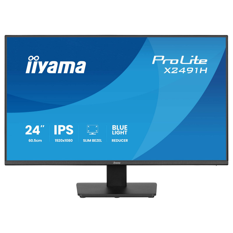 "iiyama ProLite X2491H-B1. Display diagonal: 60.5 cm (23.8""), Display resolution: 1920 x 1080 pixels, HD type: Full HD, Display technology: LCD, Display surface: Matt, Native aspect ratio: 16:9, Viewing angle, horizontal: 178°, Viewing angle, vertical: 178°. VESA mounting. Product colour: Black"\n"The ProLite X2491H features a 24'' Full HD display with a sleek 4-side slim bezel design, helping you create a clean and modern multi-monitor workspace. The IPS panel delivers sharp detail, vivid colours and consistent brightness from all angles. With a fast 120Hz refresh rate, visuals remain smooth and responsive, whether you're working on complex tasks or enjoying multimedia. Flicker-free technology and a blue light reducer enhance eye comfort, especially during extended use. A headphone socket provides convenient audio connectivity for private listening and online calls. With EPEAT Silver registration, TCO Certified compliance and an Energy Label C rating, the X2491H supports both efficient work and responsible energy use."