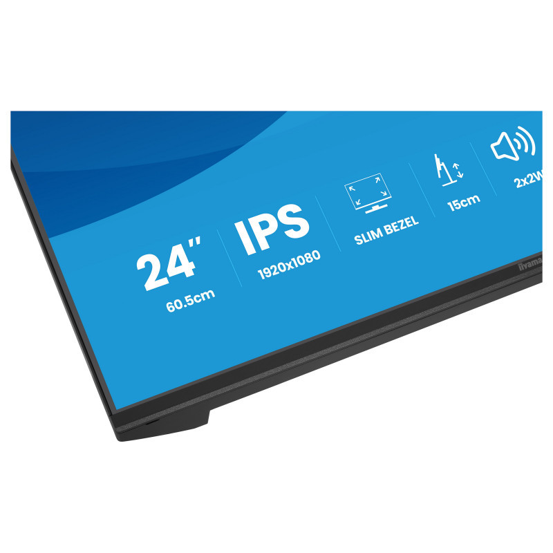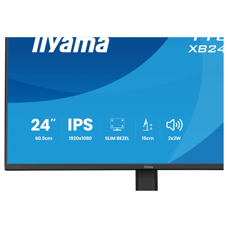 "iiyama ProLite XB2491HS-B1. Display diagonal: 60.5 cm (23.8""), Display resolution: 1920 x 1080 pixels, HD type: Full HD, Display technology: LCD, Display surface: Matt, Native aspect ratio: 16:9, Viewing angle, horizontal: 178°, Viewing angle, vertical: 178°. Built-in speaker(s). VESA mounting, Height adjustment. Product colour: Black"\n"The ProLite XB2491HS features a 24'' Full HD display with a sleek 4-side slim bezel design, helping you create a clean and modern multi-monitor workspace. The IPS panel delivers sharp detail, vivid colours and consistent brightness from all angles. With a fast 120Hz refresh rate, visuals remain smooth and responsive, whether you're working on complex tasks or enjoying multimedia. Flicker-free technology and a blue light reducer enhance eye comfort, especially during extended use. Its ergonomic stand offers 15cm of height adjustment along with tilt, swivel and pivot functions, so you can easily position the screen to suit your posture and stay comfortable throughout the day. Integrated speakers and a headphone socket support a clutter-free desk setup while providing convenient audio for calls. With EPEAT Silver registration, TCO Certified compliance and an Energy Label C rating, the XB2491HS supports both efficient work and responsible energy use."