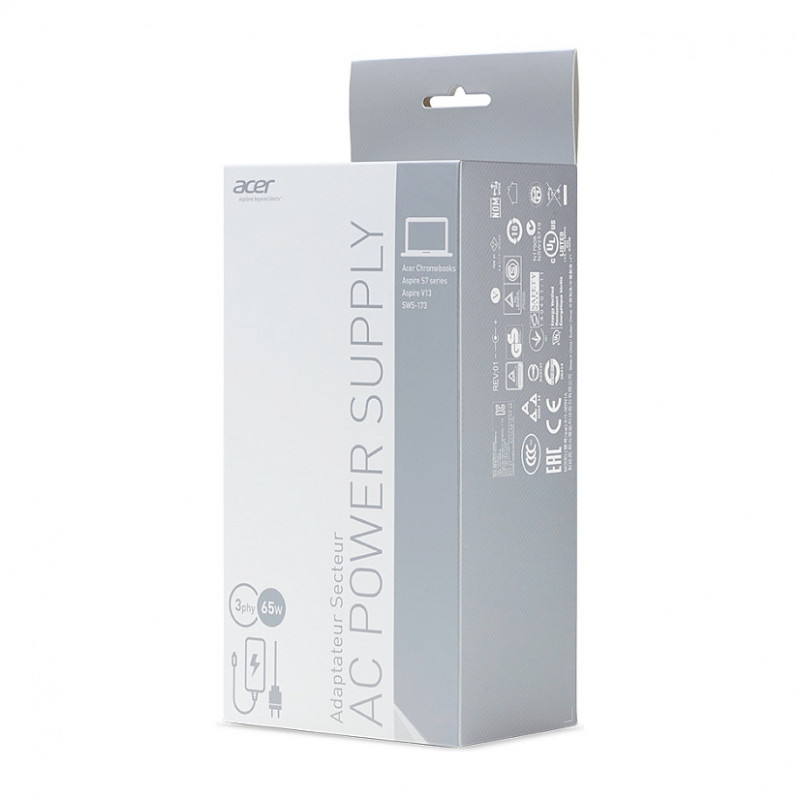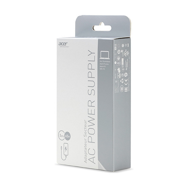 "Acer AC Adapter 65W. Purpose: Laptop, Power supply type: Indoor, Input voltage: 100-240 V. Product colour: Black"\n