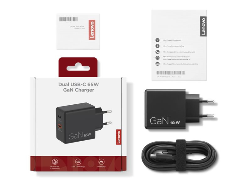 Lenovo Dual USB-C 65W GaN Charger | USB-C | 65 W | Charger