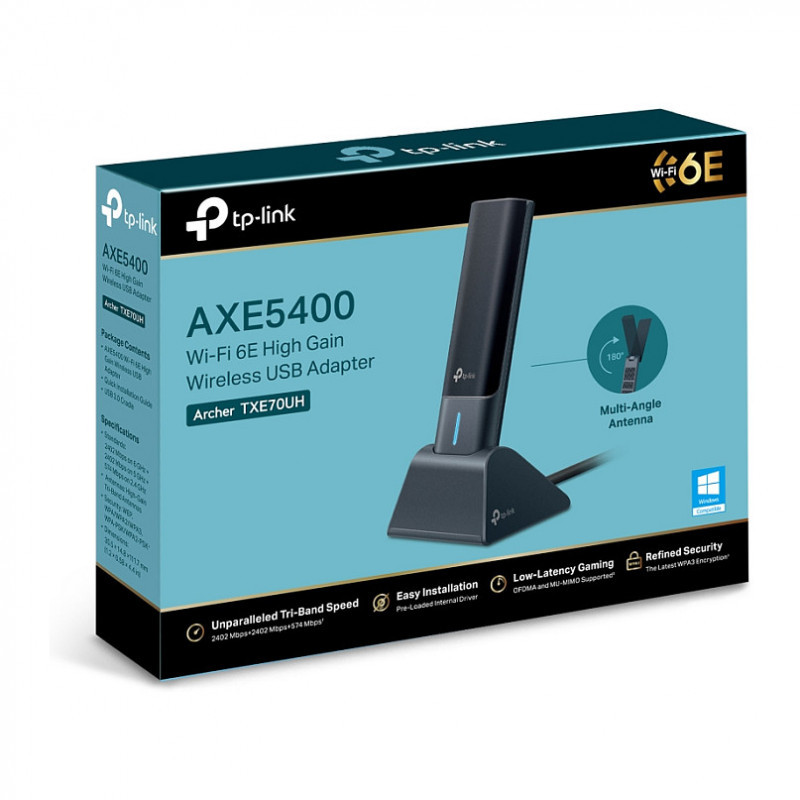 TP-Link Archer TXE70UH V1 – tai pažangus Wi-Fi 6E (802.11ax) standarto USB 3.0 tinklo adapteris, leidžiantis kompiuteriui ar nešiojamam įrenginiui prisijungti prie naujos kartos belaidžių tinklų su išskirtiniu greičiu ir stabilumu. Tai puikus pasirinkimas tiems, kurie nori maksimalios spartos ir žemos delsos naršydami, žiūrėdami aukštos raiškos turinį ar žaisdami žaidimus internete.