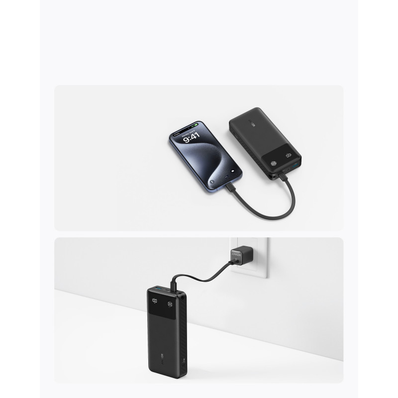 "Anker A1384G11. Battery capacity: 20000 mAh, Fast charging technology: Power Delivery. USB Type-A output ports: 1, USB Type-C ports quantity: 2. Total output power: 30 W. Product colour: Black"\n