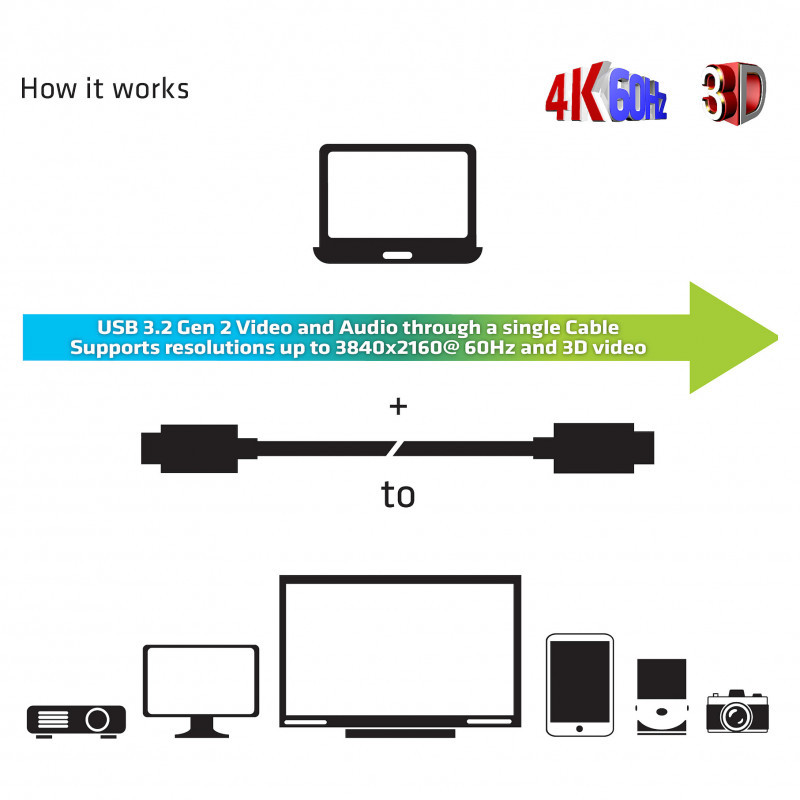 This feature ensures optimum performance between the connected devices. Supports up to 4K 60Hz UHD video, USB 3.2 SuperSpeed+ data up to 10Gbps. Video requires host device to support DisplayPort™ Alt Mode."