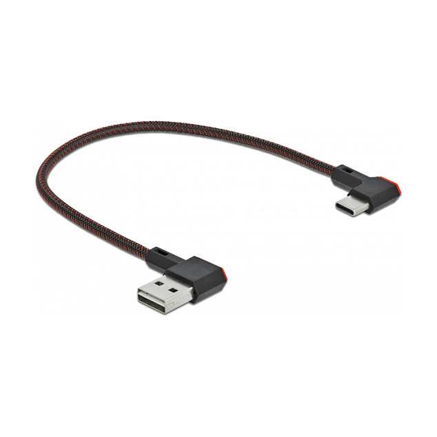 "DeLOCK EASY-USB 2.0 Cable Type-A male to USB Type-C™ male angled left / right 0.2 m black. Cable length: 0.2 m. Connector 1: USB A, Connector 2: USB C, USB version: USB 2.0, Product colour: Black"\n"This cable by Delock with EASY-USB Type-A male and USB-C™ male can be plugged into the appropriated USB female port in both directions. Thus the male connector can be used both-sided which makes the plug in easier."