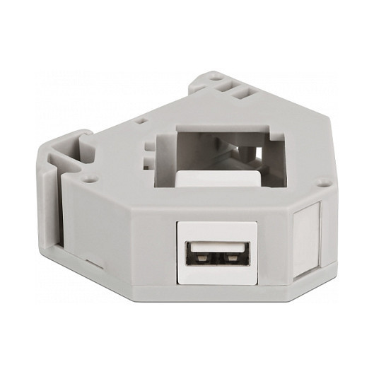 "DeLOCK DIN rail Adapter with Keystone USB 2.0 Type-A female to USB 2.0 Type-A female. Product colour: Grey, White, Connector 1: USB A, Connector 2: USB A. Width: 60.1 mm, Depth: 59.4 mm, Height: 21.6 mm. Package type: Polybag. Quantity per pack: 1 pc(s). Country of origin: China"\n"Description
