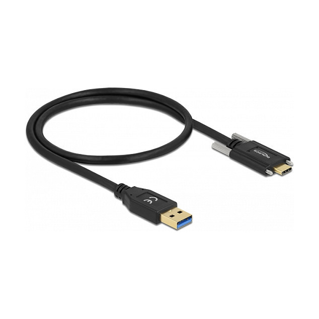 "DeLOCK SuperSpeed USB 10 Gbps (USB 3.2 Gen 2) Cable Type-A male to USB Type-C male with screws on the sides 0.5 m. Cable length: 0.5 m. Connector 1: USB A, Connector 2: USB C, USB version: USB 3.2 Gen 2 (3.1 Gen 2), Maximum data transfer rate: 10 Gbit/s, Product colour: Black"\n"This USB cable by Delock allows the connection between devices with a USB Type-C™ connector and a PC or laptop with a free USB port. The screws of the USB Type-C™ connector secure the connection and prevent accidental unplugging of the cable."